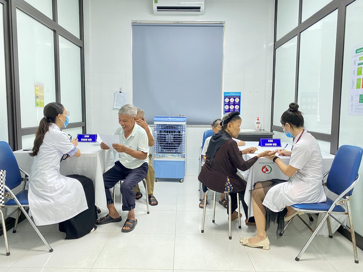 Đoàn công tác của bệnh viện gồm các bác sĩ, điều dưỡng có trình độ sau đại học đến khám lâm sàng, siêu âm, điện tim, tư vấn kiến thức chăm sóc sức khỏe, cách sử dụng thuốc hợp lý, chế độ ăn uống phù hợp và cách phòng tránh, điều trị một số bệnh thông thường cho 135/153 đối tượng chính sách.