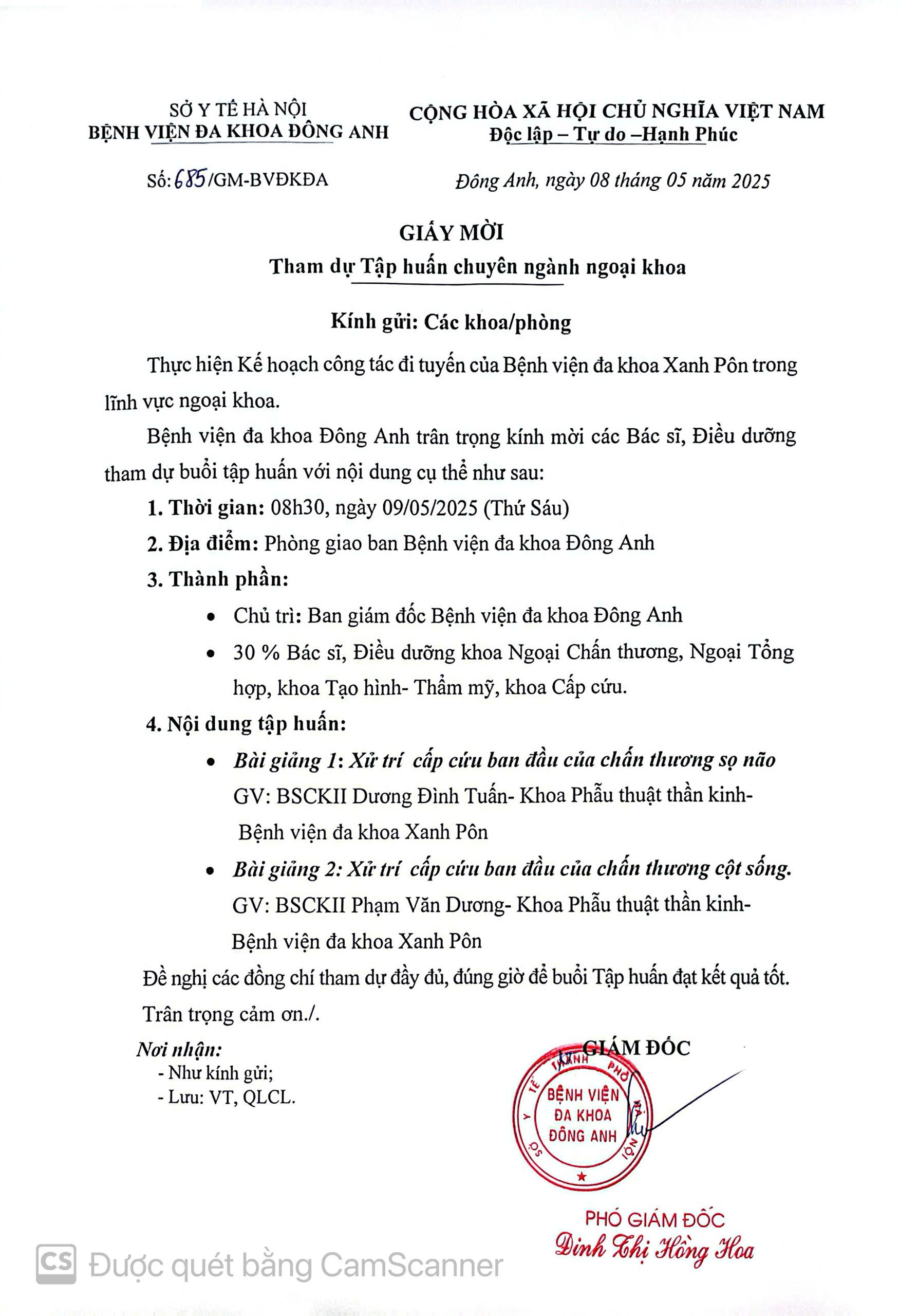 GIẤY MỜI: Tham dự Tập huấn chuyên ngành ngoại khoa