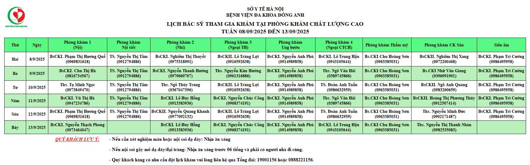 LỊCH KHÁM TẠI PHÒNG KHÁM CHẤT LƯỢNG CAO