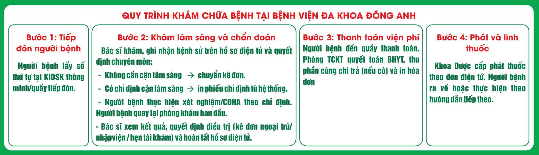 QUY TRÌNH KHÁM CHỮA BỆNH TẠI BỆNH VIỆN ĐA KHOA ĐÔNG ANH